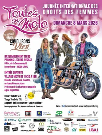 Cette année encore, dimanche 8 mars, nous nous mobilisons aux côtés de l’association Toutes En Moto 53 pour la Journée Internationale des Droits des Femmes, en les soutenant du mieux que nous pouvons pour la sécurité de la balade. 📅 Rendez-vous dès 11h30 au parking du centre commercial Leclerc Pégase, Route de Tours à Laval, pour l’ouverture du Village moto. De notre côté, pour tous ceux qui souhaite participer aux festivités, nous organisons deux départs en Sarthe pour Toutes En Moto 53 à Laval. Un départ de Trangé,📅 Rendez-vous au Lieu-dit les Maisons Rouges, départ à 10H00https://maps.app.goo.gl/NjES6MbXcChc3Uny9 Un départ de…