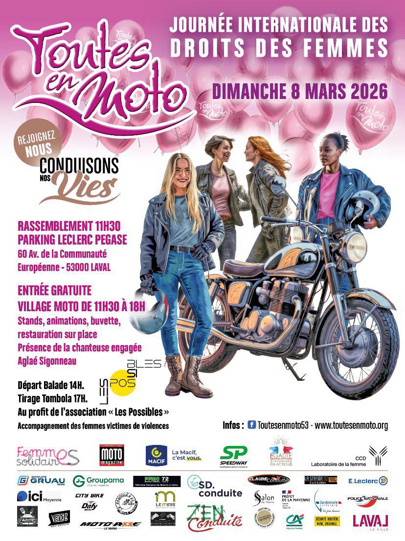 Cette année encore, dimanche 8 mars, nous nous mobilisons aux côtés de l’association Toutes En Moto 53 pour la Journée Internationale des Droits des Femmes, en les soutenant du mieux que nous pouvons pour la sécurité de la balade.